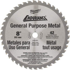 Milwaukee Tool - 8" Diam, 42 Tooth Wet & Dry Cut Saw Blade - Carbide-Tipped, Standard Round Arbor
