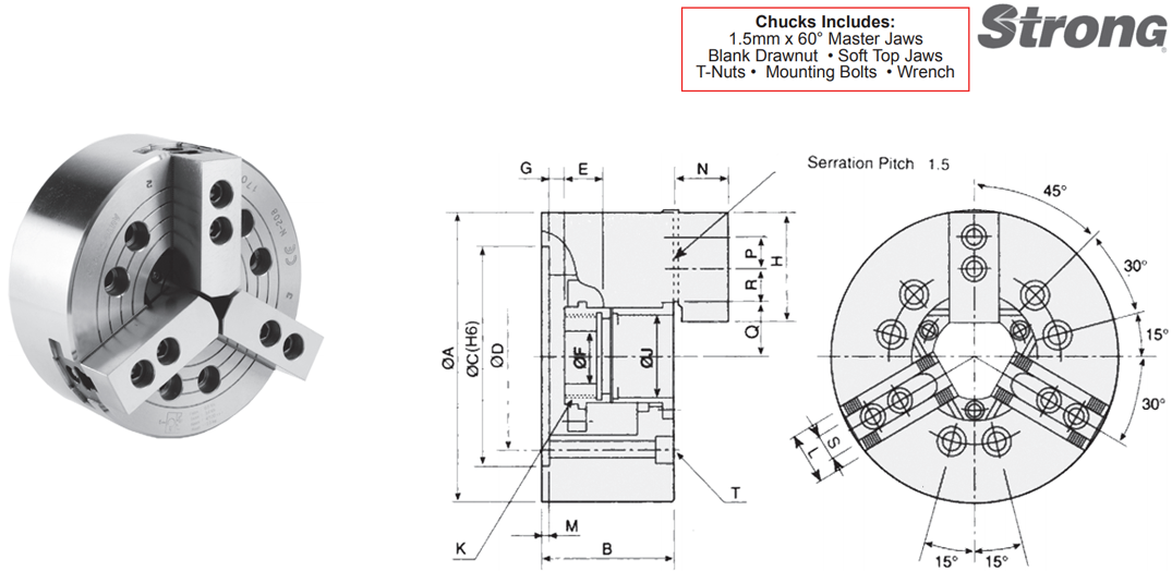 1.5mm x 60° Serrations Power Chucks With Adaptor Plate