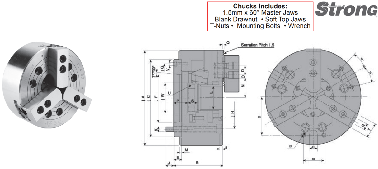 | Chuck Size | Chuck Model | Chuck Dia. | Thru-hole Dia. | Mount | Part Number | Price Each | Chuck Cross Reference |