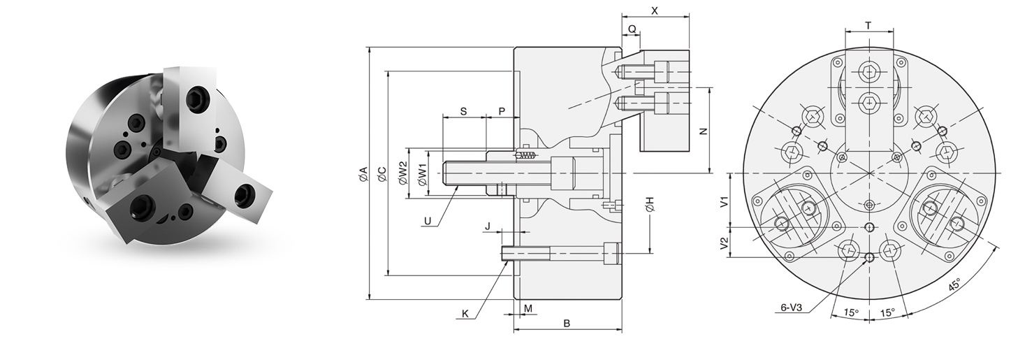 Draw down power chuck feature of radial clamping will lead to almost no work piece uplifting displacement; for machining casting and forging part: