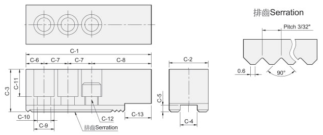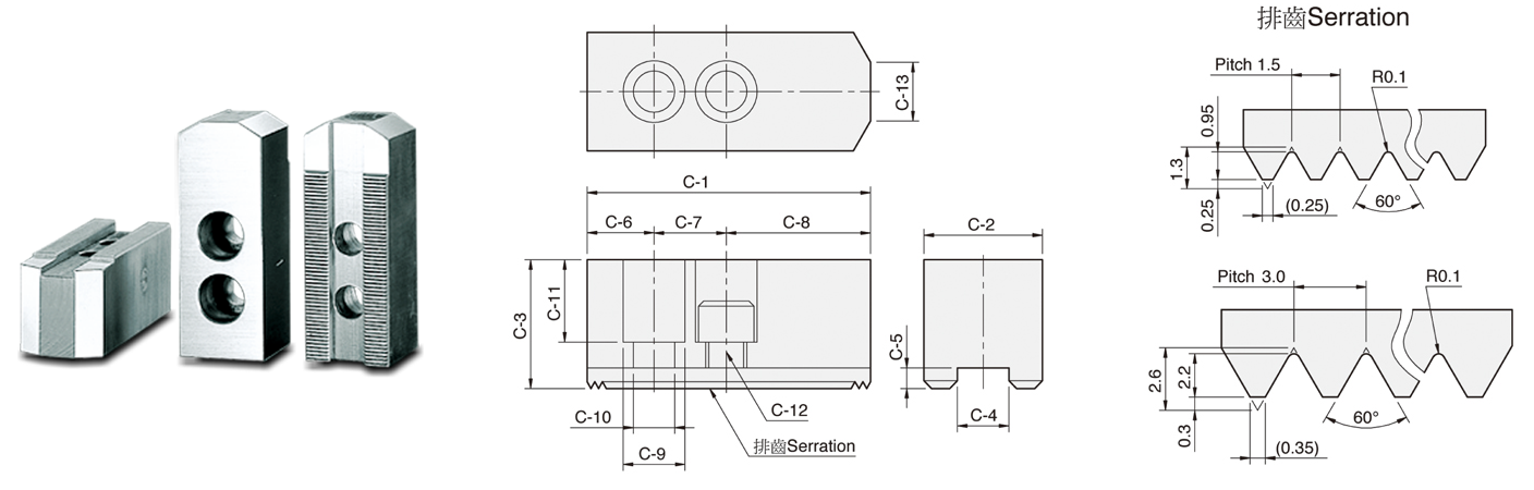 C-1 | C-2 | C-3 | C-4 | C-5 | C-6 | C-7 | C-8 | C-9 | C-10 | C-11 | C-12 | C-13 | Serration Pitch |