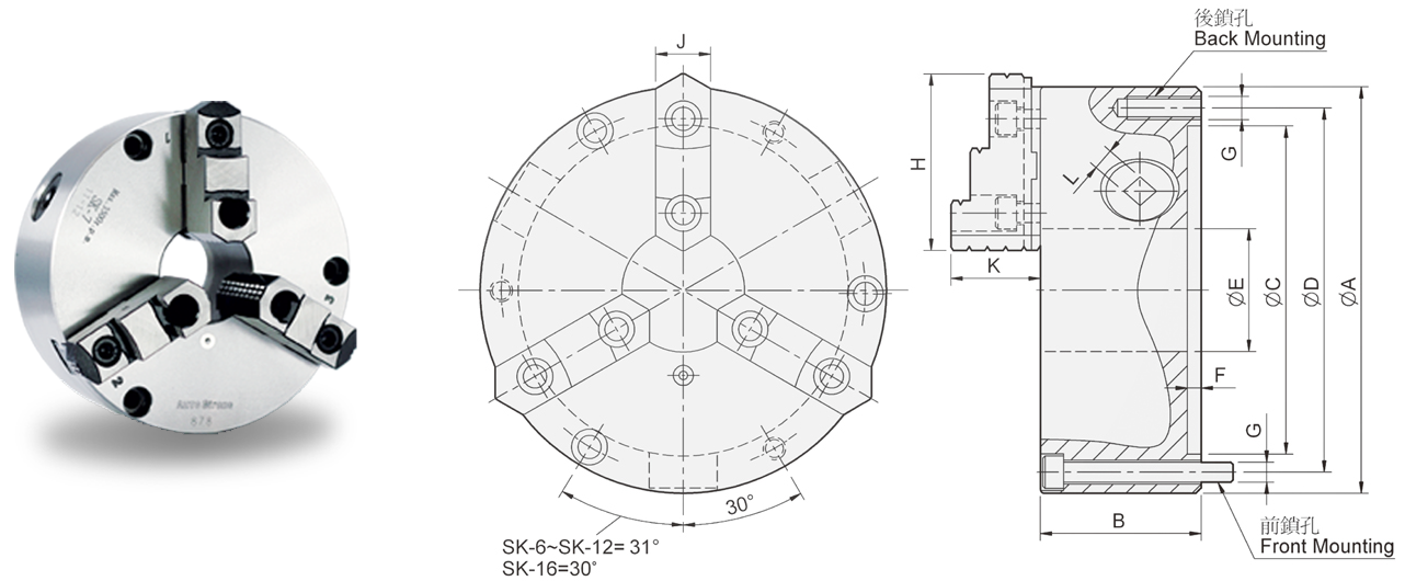 - SK types chucks have wider unilization range; hard jaws suitable for heavy cutting; soft jaws suitable for light and precision cutting.