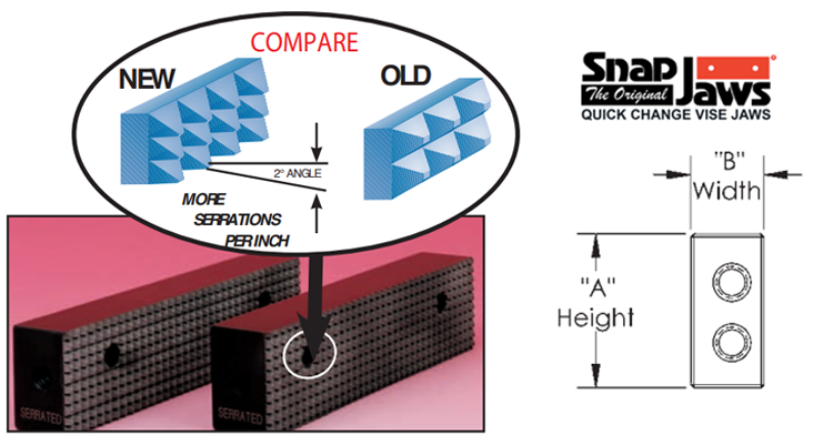 Great for holding castings or burnouts! The sawtooth serrations have a 2° positive rake on the bottom of each tooth providing a downward biting motion. The jaws are hardened and ground. When you need maximum holding power, try serrated jaws.