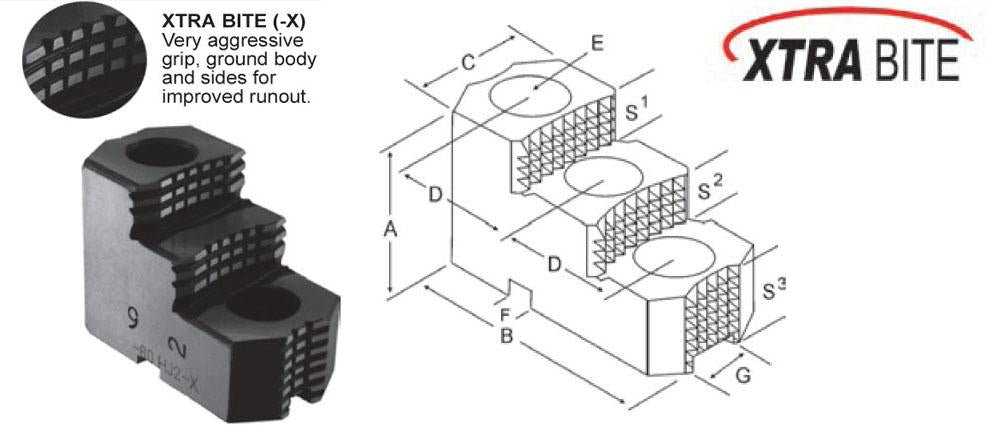 - XTRA BITE -very aggressive bite. Has conical teeth for extra gripping power and ground body to provide improved runout.