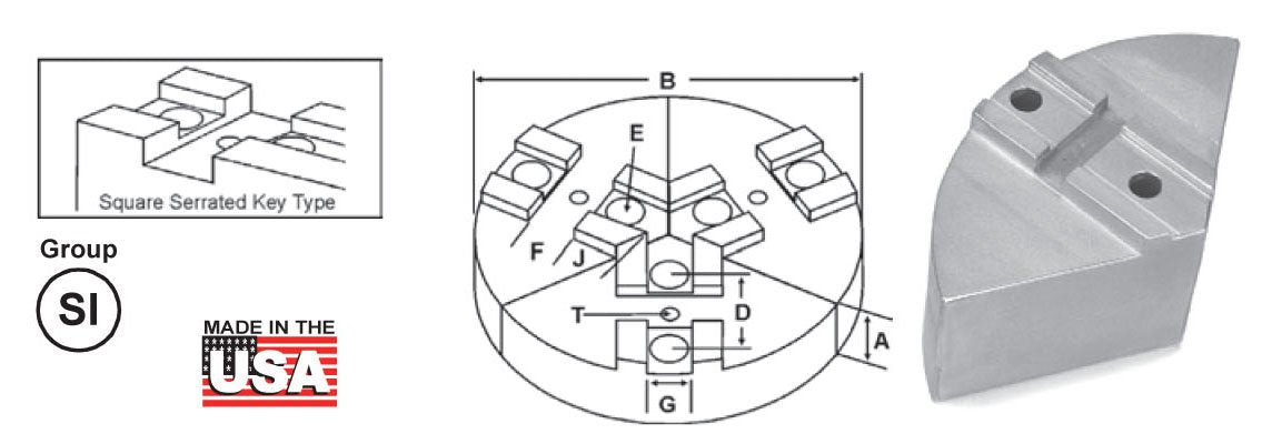 Round Jaw Material: ALUMINUM-6061-T6 Bar Stock, CAST IRON-Gray, STEEL-1018. 18" & Larger- Aluminum Casting T6