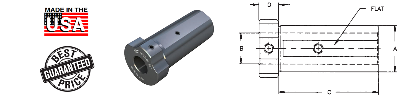These LBF Type Bushings are manufactured with a flat for clamping the Toolholder and two set screws for clamping a variety of Drills, Boring Bars and other Shank Tools. Equipped with two clearance notches for coolant. Are Heat Treated and precision ground concentric. This Universal Style is good for Coolant Through the Tool applications due to its solid configuration. For use on all Okuma CNC Machines.