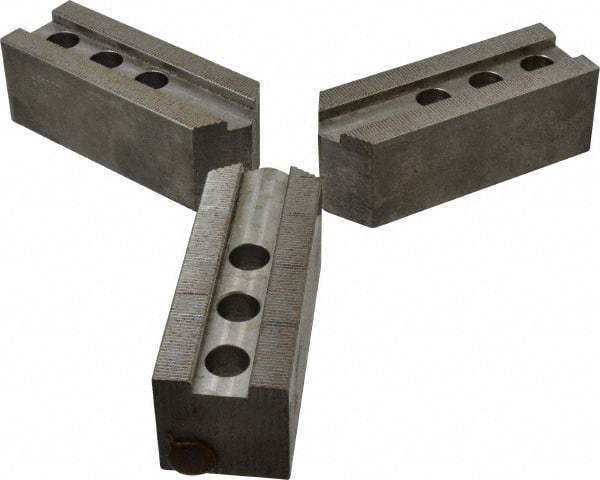 Abbott Workholding Products - 12" & Up Chuck Capacity, 1/16" x 90 Serrated Attachment, Square Soft Lathe Chuck Jaw - 3 Jaws, Steel, 1.181" Btw Mount Hole Ctrs, 5-1/2" Long x 2" Wide x 2" High, 0.827" Groove, 0.6299" & 16mm Fastener