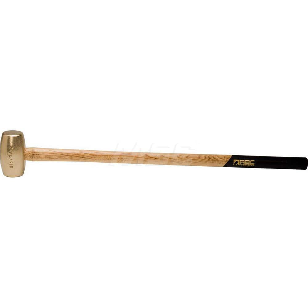 8 lb Brass Sledge Hammer, Non-Sparking, Non-Marring, 2-3/8 ™ Face Diam, 5 ™ Head Length, 35 ™ OAL, 32 ™ Wood Handle, Double Faced