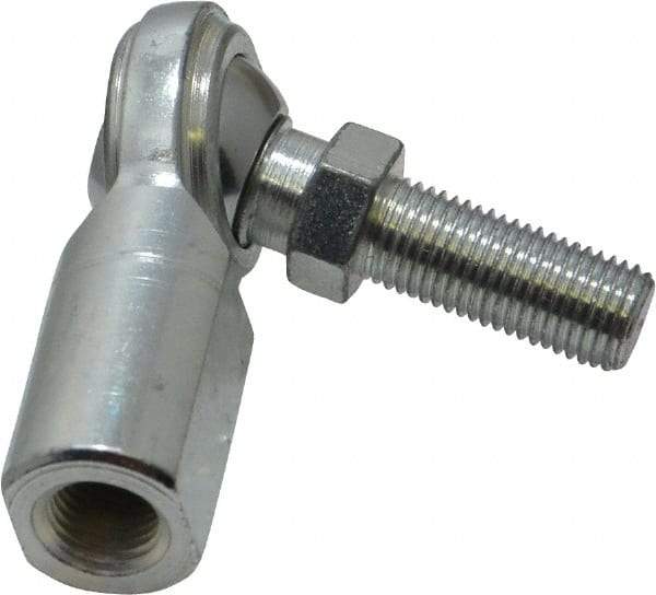Made in USA - 3/8" ID, 1" Max OD, 5,100 Lb Max Static Cap, Female Spherical Rod End with Stud - 3/8-24 RH, Steel with Steel Raceway