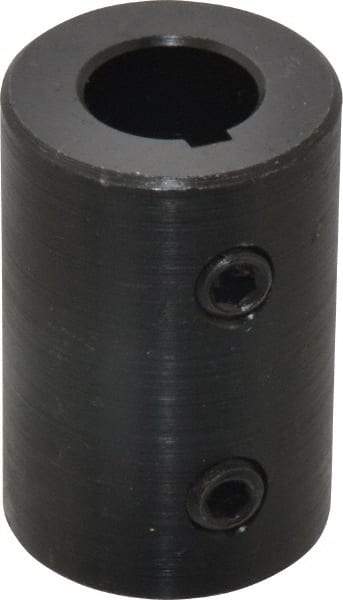 Climax Metal Products - 1/2" Inside x 1" Outside Diam, Mild Steel Set Screw Rigid Coupling with keyway - 1-1/2" Long x 1/8" Keyway Width x 1/16" Keyway Depth