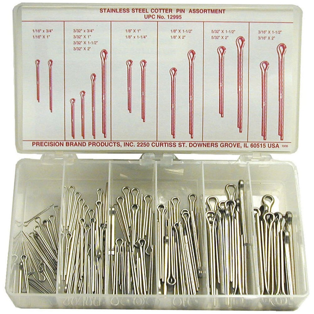 Pin & Clip Assortments; Fastener Types Included: Cotter Pins; Material: Stainless Steel; Minimum Fastener Size: 0.0625; Maximum Fastener Size: 0.1875; Minimum Length: 0.75 in; Maximum Length: 2.00