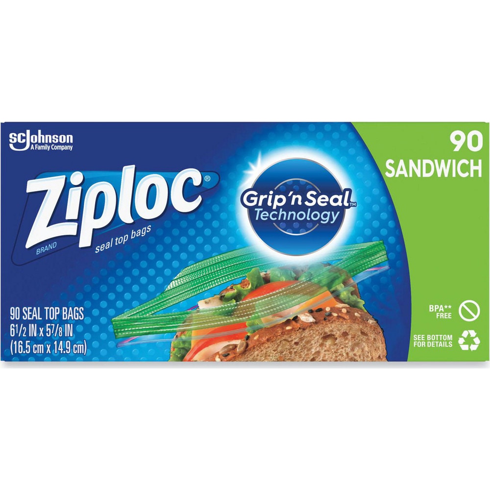 Ziploc Brand Sandwich Bags, with Grip 'n Seal Technology, 90 Count, 12/Case