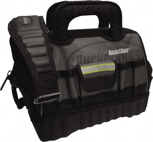Bucket Boss - 14 Pocket Gray & Black Polyester Tool Bag - 14" Wide x 10" Deep x 11" High