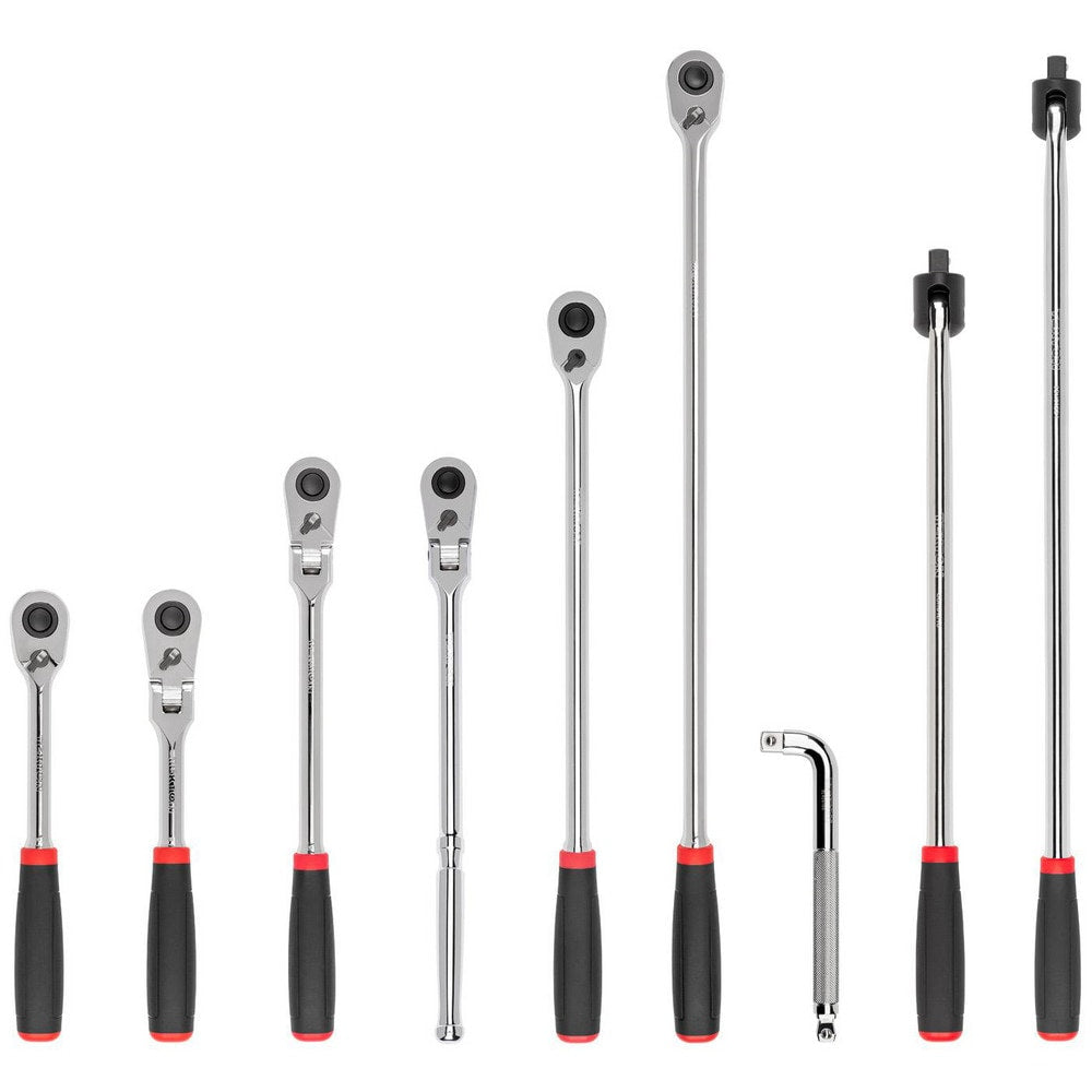 Includes | Breaker Bars: 18" & 24"; 14" Flex Head Bent Ratchet; 7-1/2" Wobble L-Handle; Fixed Head Ratchets: 10-1/2", 18", 24":Flex Head Ratchets: 10-1/2" & 14" |
