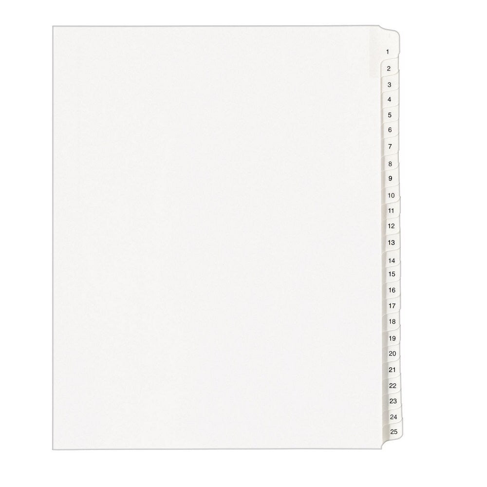 11 x 8 1/2" 1 to 25" Label, 25 Tabs, Unpunched, Preprinted Divider