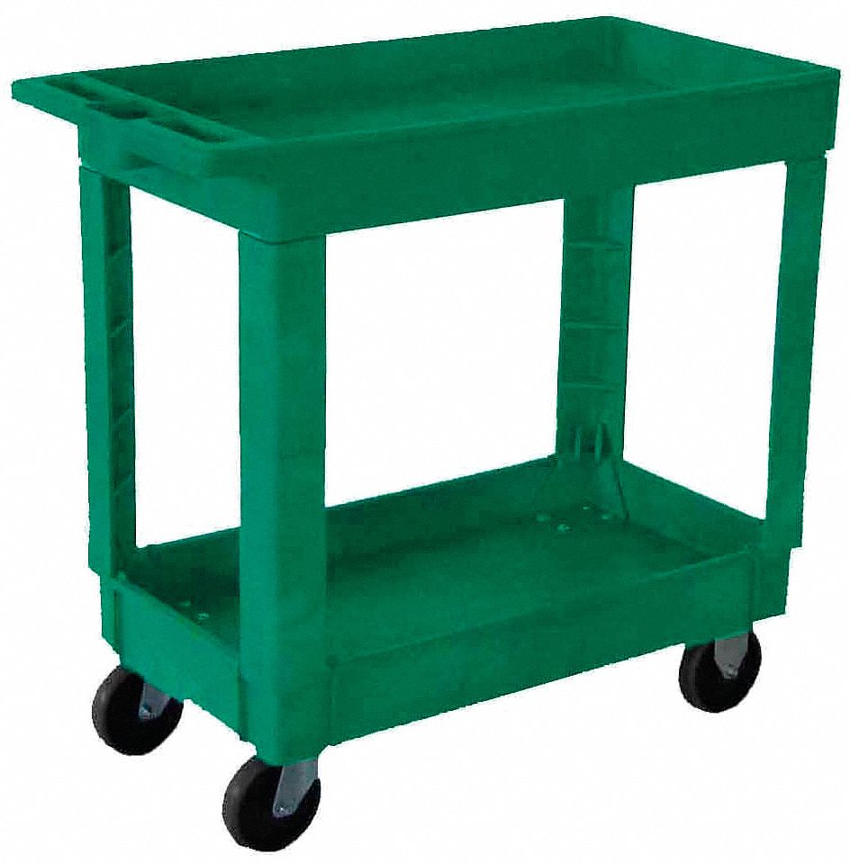 Polypropylene Flat Handle Utility Cart, 500 lb. Load Capacity, Number of Shelves: 2