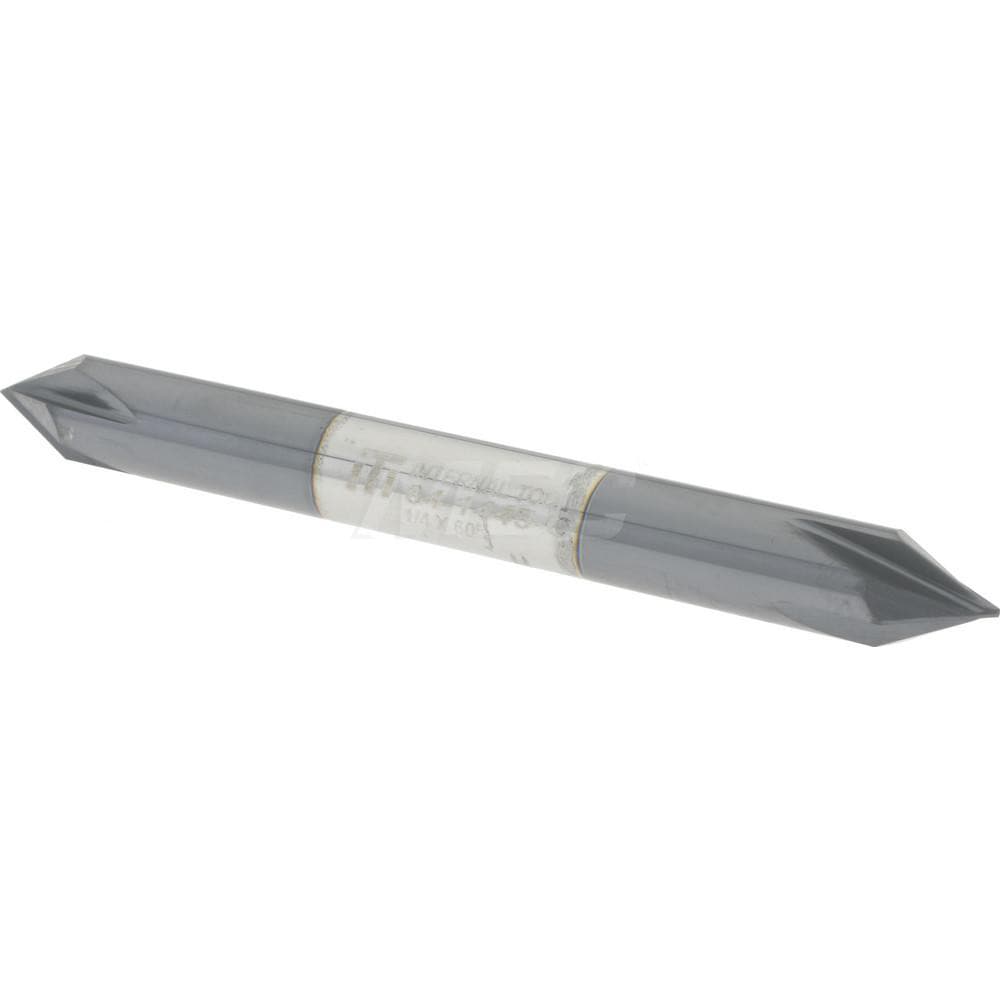 Chamfer Mill: 1/4" Dia, 1/4" Shank Dia, 60 deg, 4 Flute, Solid Carbide, Double End