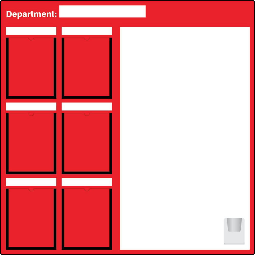 Includes | 6 Portrait-Style Document Holders: 11"H X 8-1/2"W; Qty 1 Dry Erase Marker & Eraser Holder 4-3/4"H X 3-5/8"W X 2"D; 48"H X 48"W Red Dry Erase Board |