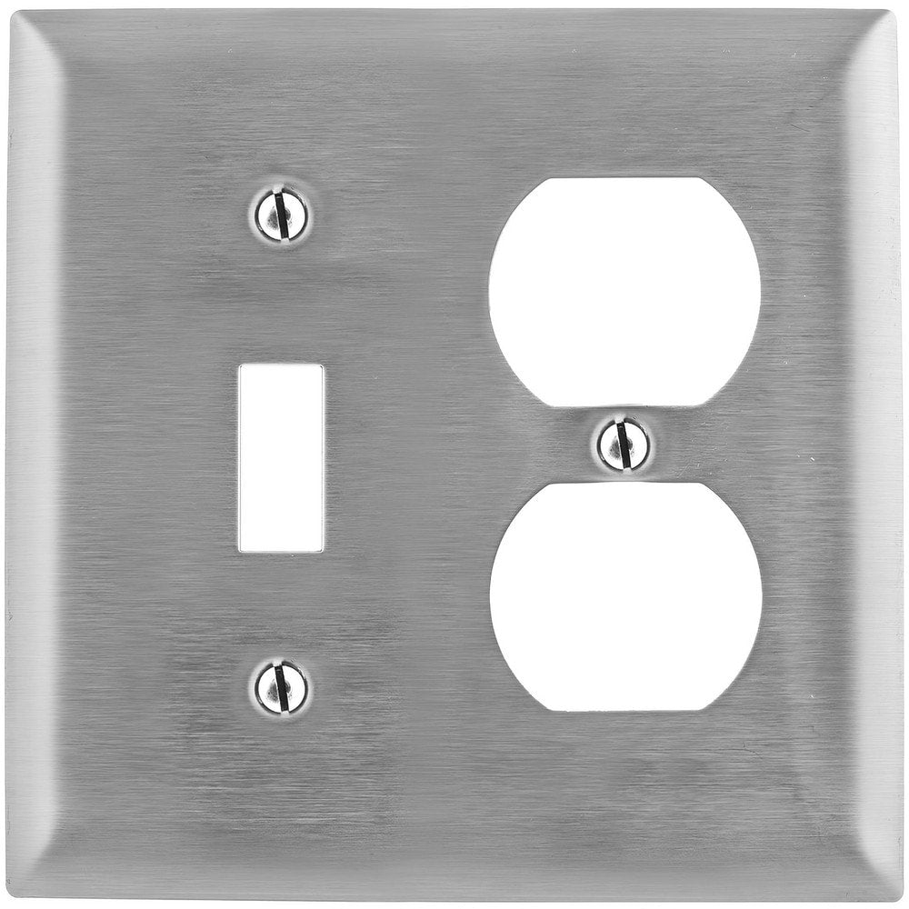Wall Plates; Wall Plate Type: Sectional Wall Plates; Color: Metallic; Finish: Brushed; Wall Plate Configuration: Switch, Outlet; Material: Stainless Steel; Shape: Rectangle; Wall Plate Size: Standard; Number of Gangs: 2