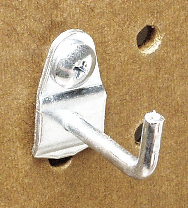 Steel Single Rod Pegboard Hook, Screw In Mounting Type, Silver, Finish: Bright Zinc