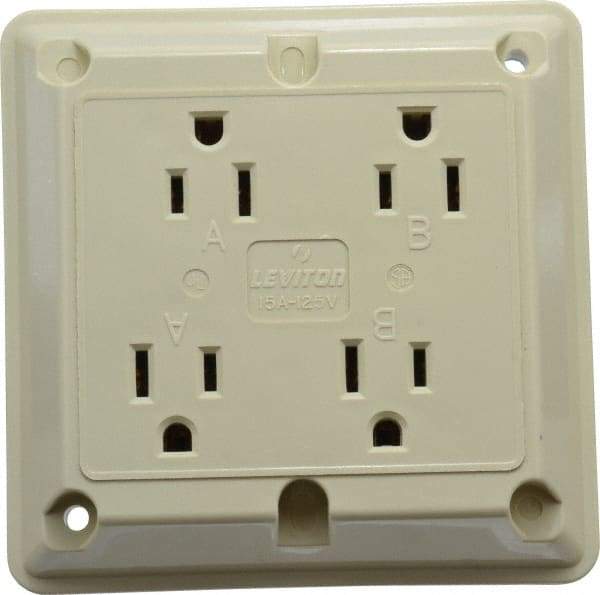 Leviton - 125 VAC, 15 Amp, 5-15R NEMA Configuration, Ivory, Specification Grade, Self Grounding Fourplex Receptacle - 1 Phase, 2 Poles, 3 Wire, Flush Mount, Chemical, Corrosion and Impact Resistant