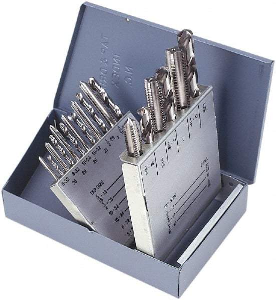 Chicago-Latrobe - F to U Drill, #4-40 to 1/2-13 Tap, Hand Tap and Drill Set - Bright Finish High Speed Steel Drills, Bright Finish High Speed Steel Taps, Plug Chamfer, 20 Piece Set, Includes Plastic case