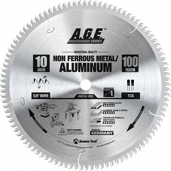 Amana Tool - 10" Diam, 5/8" Arbor Hole Diam, 100 Tooth Wet & Dry Cut Saw Blade - Carbide-Tipped, Clean Action, Standard Round Arbor