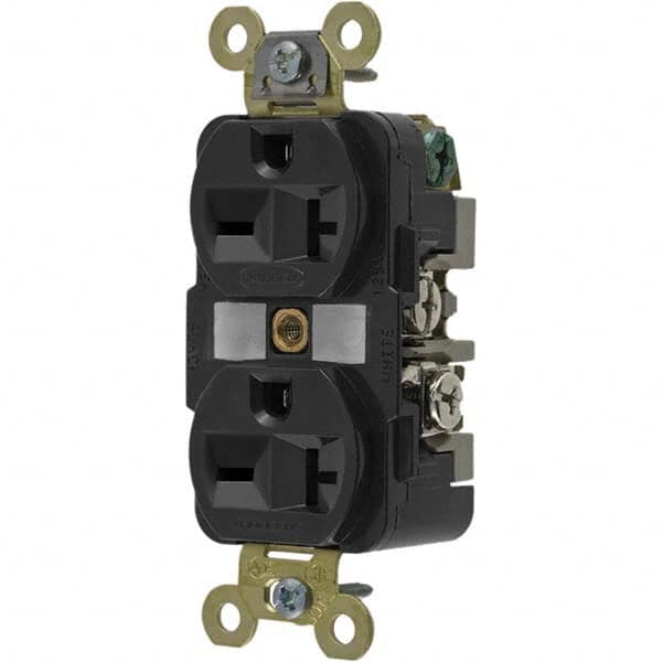 250V 20A NEMA 6-20R Industrial Grade Black Straight Blade Duplex Receptacle 1 Phase, 2 Pole, 3 Wire, Grounded, Impact Resistant