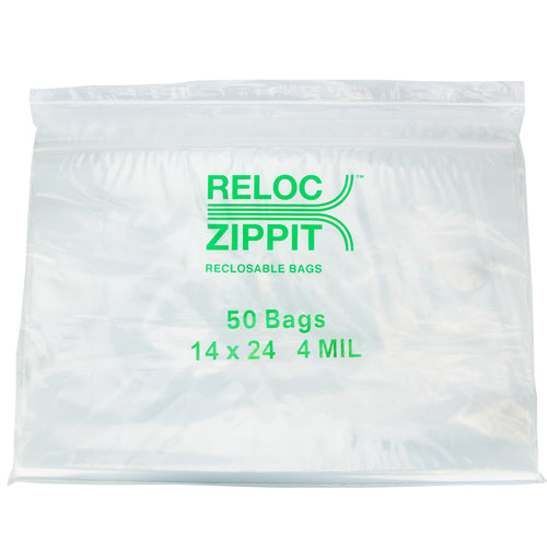 14″ × 24″ 4-MIL Clear Reloc Zippit Zipper Bags , Sold per Case of 250 (5 boxes of 50 per case)