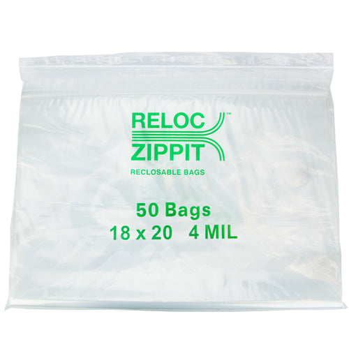 18″ × 20″ 4-MIL Clear Reloc Zippit Zipper Bags , Sold per Case of 250 (5 boxes of 50 per case)
