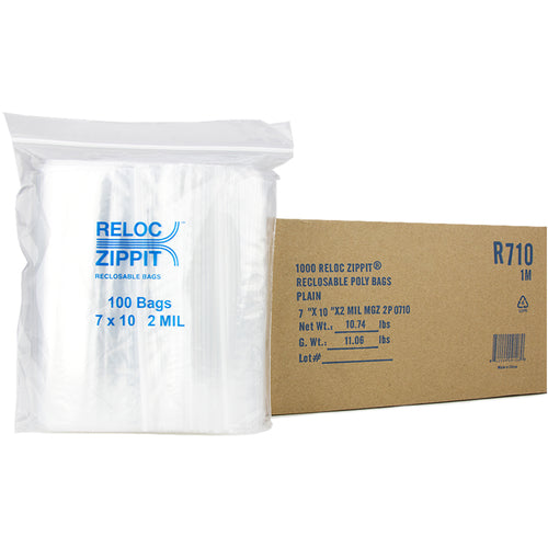 7″ × 10″ 2-MIL Clear Reloc Zippit Zipper Bags, Sold per Case of 1000 (10 boxes of 100 per case)