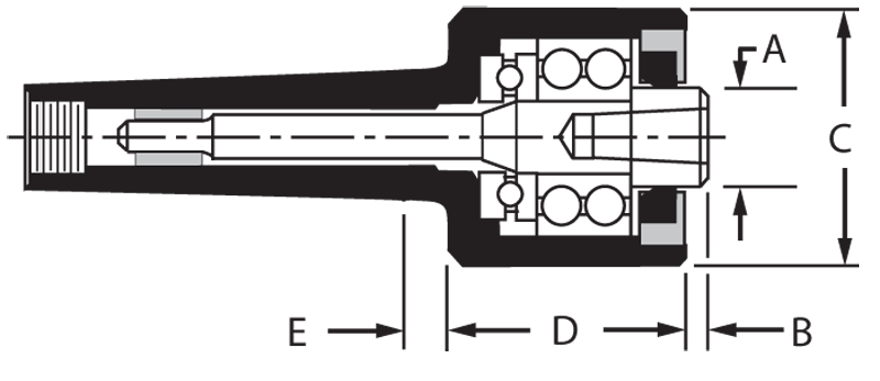 *Brand Name: Riten *Head Diameter: 3-1/8 *Head Length: 2-7/16 *Max. RPM: 4000 *Mount: 5 MT *Neck Width: 3/8 *Point Diameter: 1-37/64 *Point Length: 1/4 *Radial Load: 1400 lbs *Style: Changeable Point Body *Type: Body for Quick Change Point Live Centers