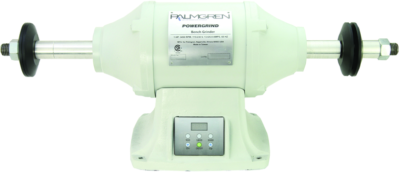 •Delivers the power, precision and versatility •At maximum rpm's they are built for intermediate blending, polishing and surface conditioning applications •At the lower rpm range they effectively handle the more delicate final finishing, polishing, buffing and surface finish refinement operations •Equipped with the latest technology variable speed inverter delivering a broad range of continuous speeds •Powerful, heavy-duty capacitor motors provide additional torque and provide plenty of power at all speeds without any loss of rpm's at full load •LED speed readout with "soft" touch on/off and variable speed control pad •3 hard speed switch settings 900 / 1800 / 3600 RPM for the 6" and 8" models and 900 / 1800 / 3000 RPM for the 10" model •Press the high or low switch button on touch pad to variably adjust the speed up or down in 100 RPM increments from the hard rpm setting •Dynamically balanced rotors and sealed bearings •Extended wheel to wheelclearance •Units fit Item #9670101 or Item #9686000 tool stands •3 Year Warranty
