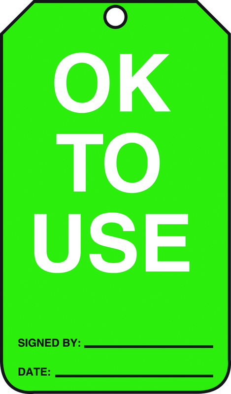 •Brand Name: Accuform •Color: White/Black On Green •Height: 5-3/4 •Material: Plastic •Message - Back: Ok To Use •Message - Front: Ok To Use •Shape: Rectangle •Width: 3-1/4
