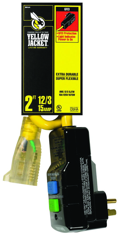 •Brand Name: Woods •Cord Color: Yellow •Cord Length: 2' •Description: Single outlet with right angle male plug •Gauge/Cond.: 12/3 •No. of Outlets: Single •Power Lite: No •Style: Right Angle Male Plug •Wire Type: SJTW •125V Rating: 15 A