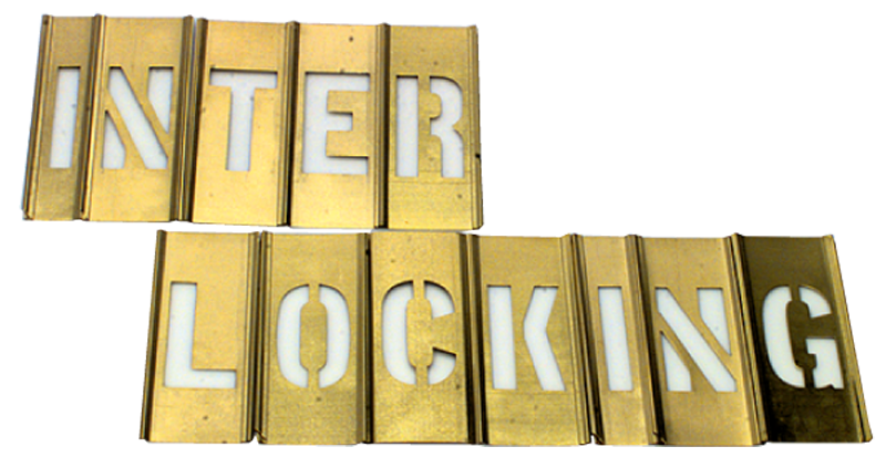 •Brass AdjustableStencils •An inexpensive and flexible method of marking goods and making signs. Simple to use, all the characters engage each other by sliding adjacent grooves together. Gothic Style Stencil Sets Figures Only: 15 pieces as follows - 12345678900; 1 Beginner; 1 Plain Ender; 1 Period; 1 Dash Letters Only: 33 pieces as follows - ABCDEFGHIJKLMNOPQRSTUVWXYZ&; 1 Beginner; 1 Period Ender; 1 Space; 1 Period; 1 Comma; 1 Dash Letters & Figures: 92 pieces as follows - AAA BB CC DD EEEE FF GG HH III JJ KK LL MM NNN OOO PP Q RRSSS TT UU VV WW XX YY ZZ && 111 22 33 4455 66 77 88 99 000; 1 Beginner; 1 Period Ender; 1 Plain Ender; 1 Comma; 1 Dash; 3 Spacers; 2 Periods