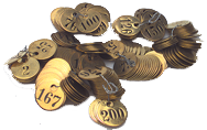 •All Purpose Number Checks •Brass: 1" diameter; #18 gauge brass with sunk, black enamel-filled number on a single side; 3/16" hole. Aluminum: 1-1/4" diameter; #22 gauge aluminum with black filled numbers on single side that won t chip out; 1/8" hole.