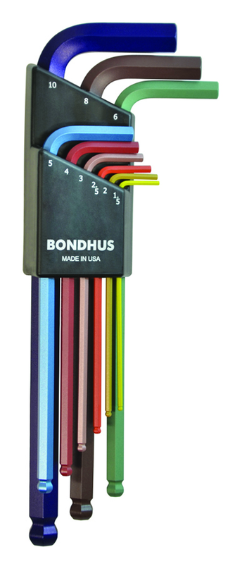 •Arm Length: 3 - 6.7" •Arm Style: L-Wrench •Brand Name: Bondhus •Driver Style: Ball End •Number of Pieces: 9 •Overall Length: 9-3/8 •Set Includes: 1.5, 2, 2.5, 3, 4, 5, 6, 8, 10mm •Size: 1.5 - 10mm