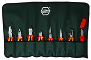 •Brand Name: Wiha •Case: Roll Up Pouch •Number of Pieces: 1000 Volt Rated, 10,000 Volt Tested •Set Includes: Insulated 6.3" Long Nose Pliers, 6.3" & 9" Lineman's Pliers, 6.3" Wire Stripping Pliers, 8" Long Nose Pliers, 6.3" Diagonal Cutters, 8" High Leverage Cutters, Knife in Roll Up Pouch