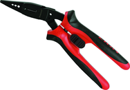 •Diamond tooth design allows for greater gripping ability •Angled head design allows for overall greater flexibility •Ergonomic anti-fatigue comfort grip •Thumb lock locking mechanism on grip handles •#6 and #8 Bolt cutter •Induction hardened cutting edges for hard and soft wire cutting •Crimps 10-22 AWG terminals and connectors •Strips 10-14 AWG solid and 12-16 AWG wire