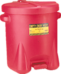 •For safe temporary storage of solvent, waste rags and other materials subject to spontaneous combustion •Won't rust or dent •Resistant to most chemical compounds •Self-closing lid with foot lever •Compliance: OSHA 29 CFR 1910.108 and OSHA 29 CFR