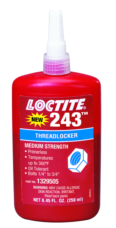 •Brand Name: Loctite •Color: Blue •Container: Bottle •Hazard Code: HAZ57 •Model No.: 243 •Size: 250ml •Strength: Medium-Primerless •Style: Threadlocker