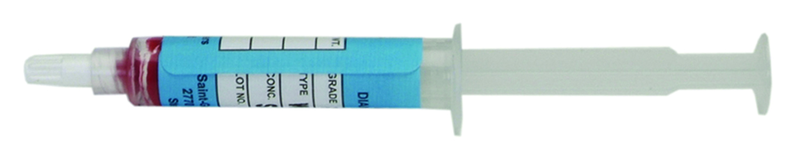 *Performs on all materials - hard and soft *Excellent for mold, die and tool polishing, polishing to final tolerance of ceramic parts, initial charging of lapping plates and discs, and other processes that require mirror finish and close tolerance performance *Use oil soluble when solvent is used for clean-up and water soluble when soap/water is used for clean-up *Diamond powders uniformly distributed in a liquid vehicle *Easy to use plastic syring