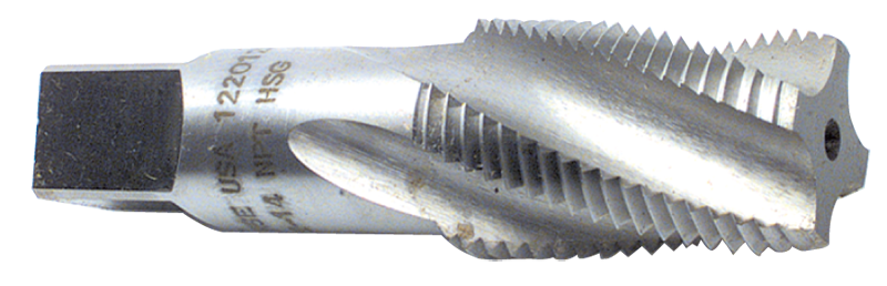 •Brand Name: Morse Cutting Tools •Chamfer Length: 1.5P - 2P •Coating: Bright •List No.: 2121 •Material: High Speed Steel •Number of Flutes: 4 •Overall Length: 2-7/16 •Size: 1/4-18 •Size Type: Pipe •Style: Taper •Thread Length: 1-1/16 •Thread Type: NPT