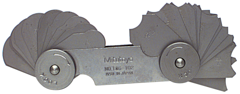 •Brand Name: Mitutoyo •Model Number: 186-102 •Number of Pieces: 32 •Size: 17/64 to 1/2 by 64ths •Type: Radius Gage Set