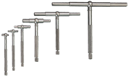 •Uniform contact pressure •Self centering plungers •Locks on any setting •Rounded contacts •Knurled knob on handle •Bore size obtained by measuring over gage contacts with a micrometer