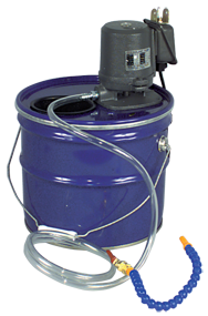 •National Coolant •Pumps 3 Gallon and 10 Gallon Flood Type •Cast iron pump housing •3 Gal. – 11" round x 14-1/2"H •10 Gal. – 24" x 12" x 8" •1/8 HP 1720 RPM •6.75 GPM 3' •Steel tank