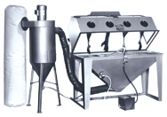 •Designed to keep media free of contaminants •During blasting, media is suctioned into the abrasive separator, where the dust and contaminants are removed and exhausted into a filter bag •The cleaned media then returns to the cabinet for reblasting. •Ideal for blasting painted, rusted, and corroded parts. •300 CFM Abrasive Separator •Is available on Models 36 through 48" x 24" Split Level •Is suited for medium to heavy amounts of blasting where media separation is needed •Is suited for use with glass beads or other "fine" media only 600 CFM Abrasive Separator •Is available on Models 40" x 40" Split Level and larger •Is suited for medium to heavy amounts of blasting where media separation is needed •Is suited for use with most types of media including glass beads and aluminum oxide •1 Year Warranty 450 CFM Abrasive Separators•Available for all Models 36 through 48x 30 Split Level Balsters and used in medium to heavy blasting where seraration is needed and can be used with Glass Beads or Aluminum Oxide. Call for Details. •F.O.B. WARREN, MI