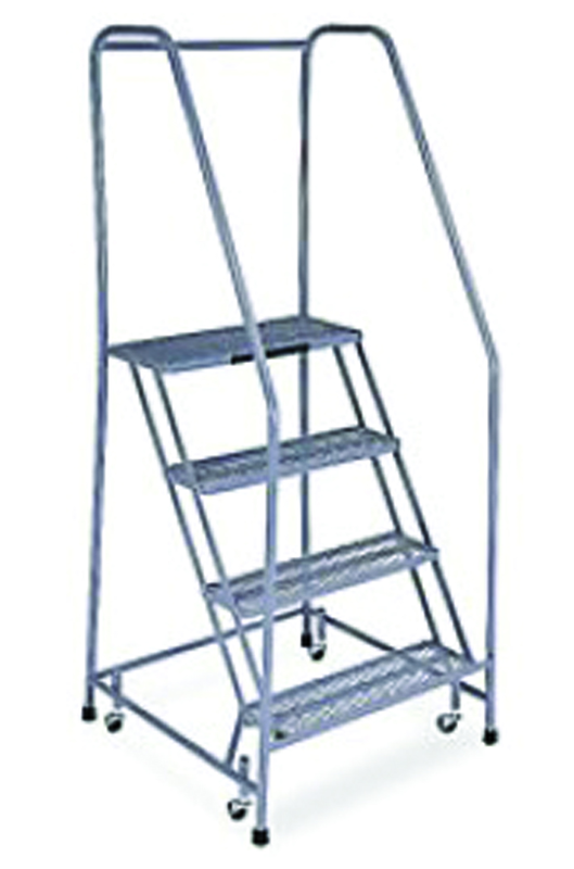 •One piece, all welded, steel mobile platform laddersmeet or exceed OSHA standards. •1" OD steel tubing •Ladders with 1 thru 4 steps have 2" spring loaded casters •Ladders with 5 thru 11 steps have a "safe-lock" lower step to prevent movement while in use •Gray powder coat finish •Meet OSHA 1910.29 and ANSI A14.7 standards •450 Lb. load capacity •Ship via truck