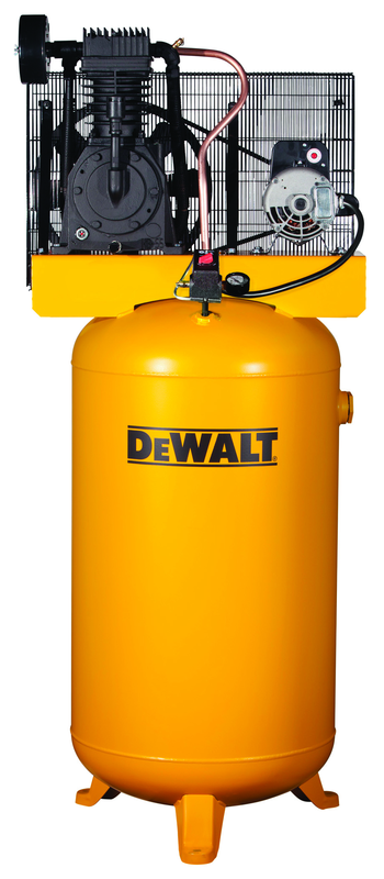 •AFCM: 17.9 SCFM 100 PSI 17.0 SCFM @ 175 PSI •Brand Name: DeWALT •Dimensions: 34.5 x 34.75 x 76.5 •Max PSI: 175 •Model No.: DXCMV5048055.1 •Motor: 5HP, 230V, 1PH •Start-Up Oil Kit: Maintenance Kit Available •Starter Included: No Mag Starter •Style: Vertical •Tank: 80 •Weight: 455 lbs